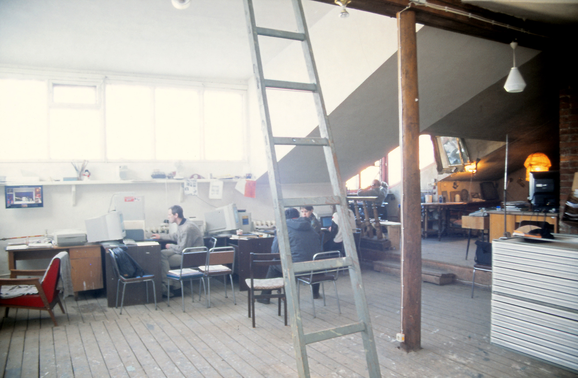 Unser Gastgeber war das Institute of Contemporary Art ICA, das 1992 von Joseph Backstein gegründet worden war – ein Refugium der unangepassten zeitgenössischen Kunst innerhalb einer von offizieller Staatskunst dominierten Szene. Das ICA war im Atelier Ilya Kabakovs untergebracht, der vor seiner Emigration in die USA als Mitglied im russischen Künstlerverband das Privileg eines der staatlichen Ateliers genossen hatte, die in den Dachgeschossen der gutbürgerlichen Wohnhäuser der Innenstadt untergebracht waren. Nun sah sich das ICA mit den Begehrlichkeiten der Immobilien-Mafia konfrontiert, die sich die Räume unter den Nagel reißen wollte. Um eine Besetzung zu verhindern, war ein kräftiger junger Künstler permanent dort einquartiert worden und schob Wache.