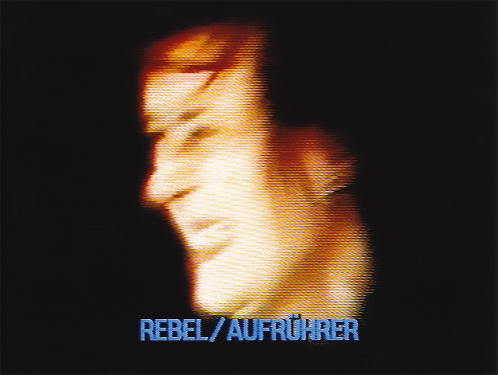 Der Raum, der der Akademie gewidmet war, zeigte in schweren Mahagonirahmen hochvergrößerte Fotografien unserer Professoren Peter Dreher und Wilhelm Loth. Beide hatten uns für die Arbeit Automatenfotos überlassen. Die monumentale Skalierung verwandelt das beiläufige Dokument in ein nahezu kanonisches Porträt, das die Aura des „Meisters“ heraufzubeschwören scheint und zugleich seine Hybris sichtbar macht.