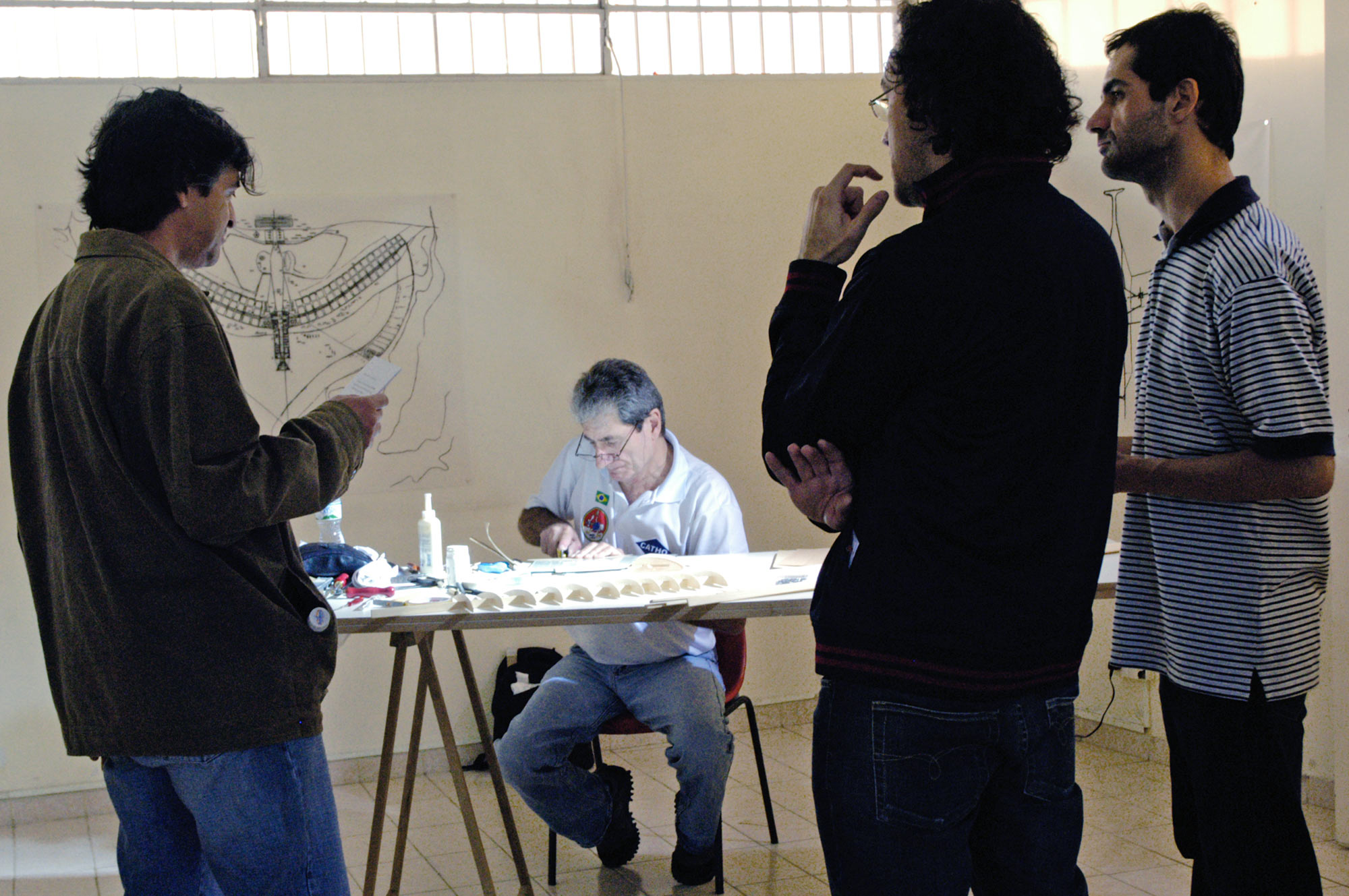 Hierher gelangten Besucher, die den Parcours von X-Moradías paarweise durchliefen. Mit dem Lift ging es durch Gänge und über Treppen, vorbei an der Funken sprühenden Telefonanlage aufs Dach. Hier verliert sich das Häusermeer nach allen Seiten hin im Dunst des Horizonts. Im von Scheinwerfern erleuchteten Penthaus, dem Casa do Zelador, treffen sie auf den Konstrukteur, der zwischen Plänen und Karten die Zeichnungen Lucio Costas von Brasília in das Modell eines Segelflugzeugs übersetzt. Zwischen Werkzeugen und Leim, einer tropischen Pflanze, Zebrafinken-Paar und einem laufenden Radio nehmen die fragilen Flügel aus Sperrholz mit einer Spannweite von 180 cm Gestalt an. Rumpf und Cockpit werden aus einem massiven Holzklotz gefeilt. Über die 5 Tage währende Veranstaltung gewinnt der Plano Piloto Brasílias eine dreidimensionale Gestalt.