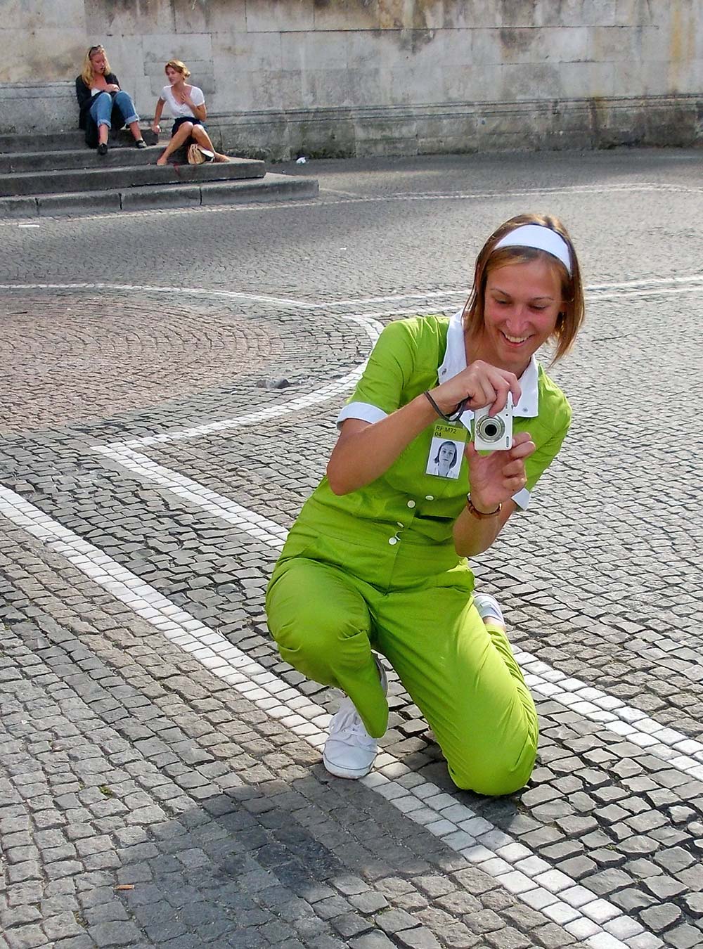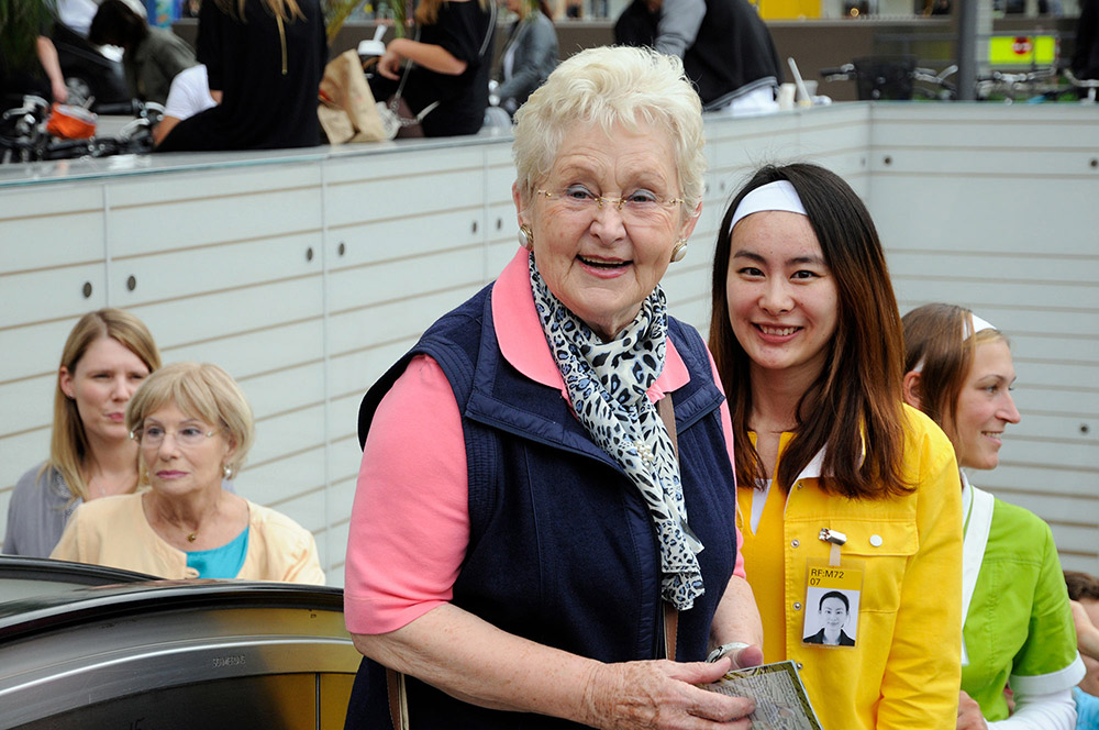 Vom 26. August bis 11. September 2012 waren 40 Akteurinnen und Akteure in der Münchner Innenstadt unterwegs. Ihre Kostüme, Reinterpretationen der Courrèges-Outfits, entwarf die Modedesignerin Anna Sophie Howoldt. Die vier Farbgruppen, Himmelblau, Gelb, Grün, Orange und Silber, knüpften lose an die ursprünglichen Funktionen an: Himmelblau waren die Ordnungskräfte, die Überwege sicherten, Auskunft erteilten und den Überblick behielten. Orange, ursprünglich Platzanweiser und Parkplatzwächter, markierten und benannten den Stadtraum und machten Strömungsversuche. Gelb, damals für die Sauberkeit verantwortlich, sammelte Gesten, die sich zu einem nonverbalen Vokabular addieren. Grün, 1972 Rundfunk und Fernsehtechniker, wurden von uns mit Kameras ausgestattet und dokumentierten fortwährend das Geschehen. Die Koordinatoren der Gruppen trugen silberne Overalls. Gemeinsam mit der Dramaturgin Sarah Hillinger entwickelten wir ein Verhaltensrepertoire und choreografische Miniaturen. Damit entstanden entlang wechselnder Routen durch die Münchner Innenstadt und den Olympiapark Interaktionen, die sich an den Verhaltensregeln der Ordnungskräfte von 1972 orientierten und sich den öffentlichen Raum zu eigen machten.