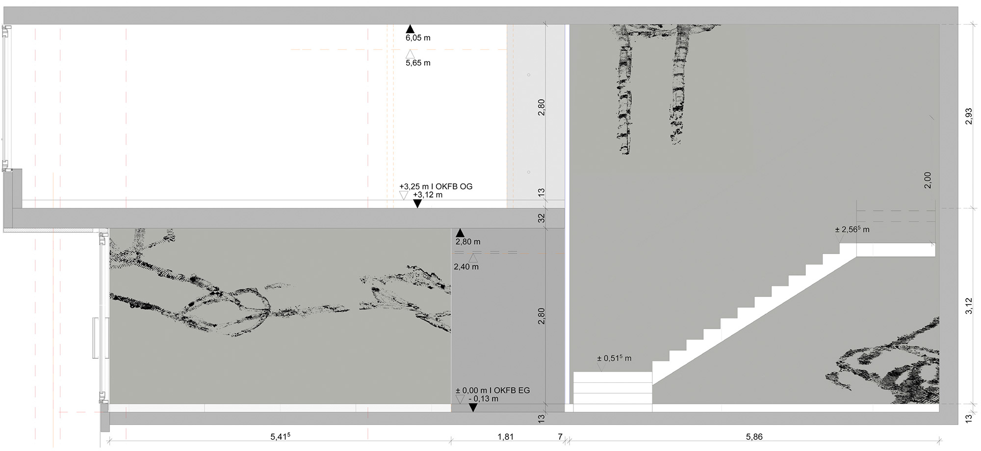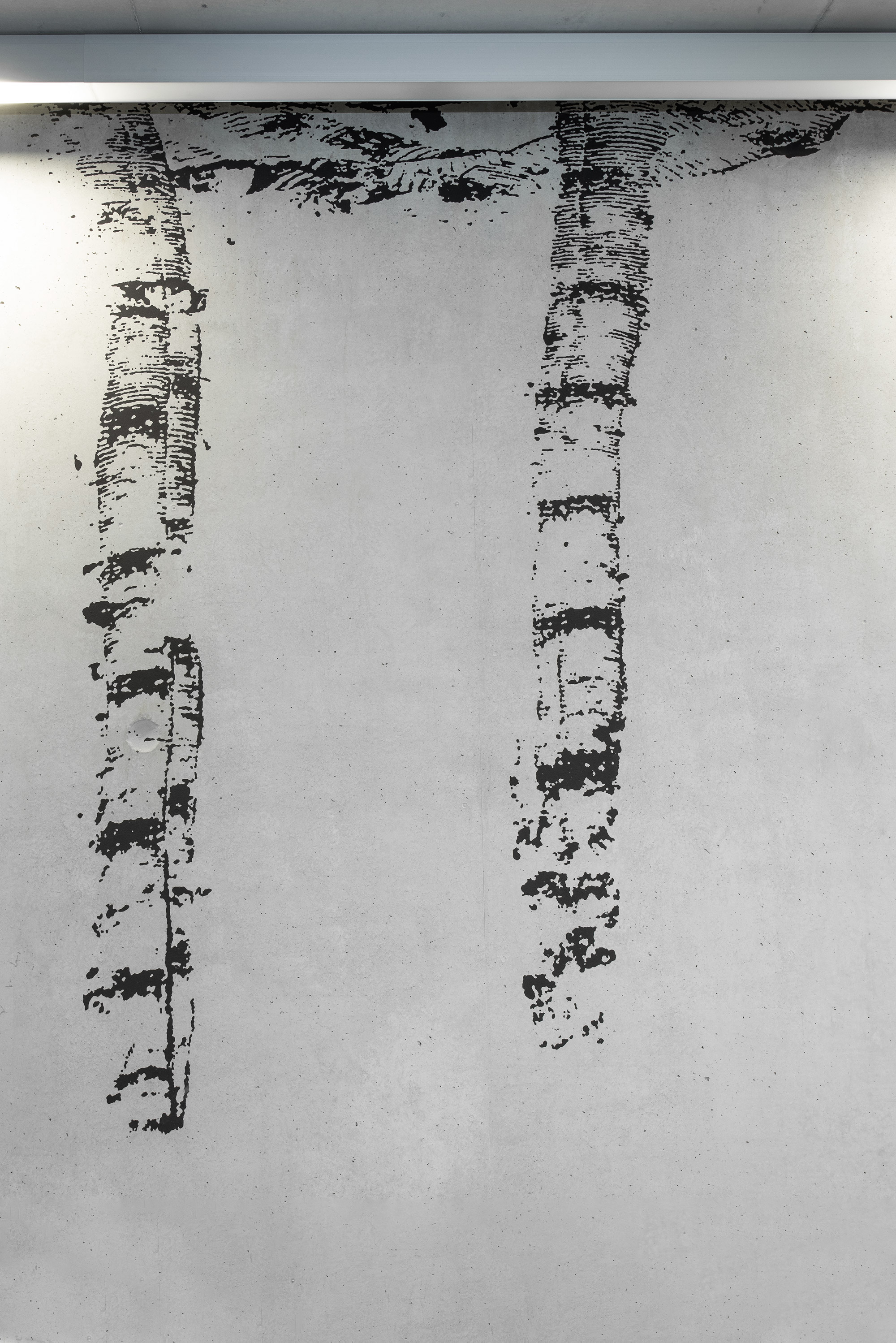 Ausgehend von Fotografien der Roverfährten auf dem Mars wurden im Systemhaus Technik Bilder von Fahrspuren direkt auf die Wände aufgebracht. Spuren im Sand sind unbeständig. Während Marsstürme sie verwischen, gibt die Kunst am Bau den flüchtigen Zeichen Dauer und Bestand.