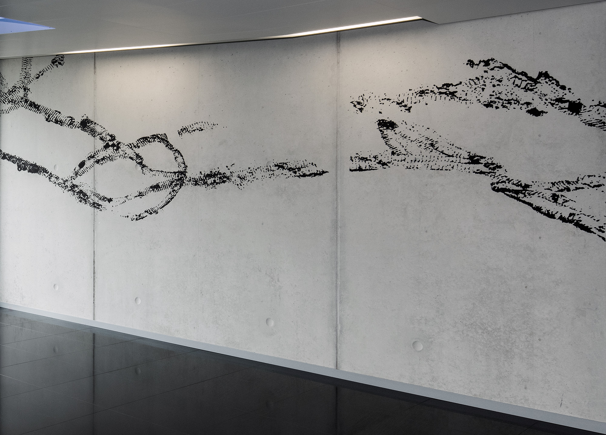Die Bilder führen als Abbild und Sinnbild ein vexierhaftes Doppelleben zwischen Sein und Schein, zwischen Pragmatik und Ästhetik. Spannungsvoll auf die Wände verteilte Bilder mit informellen Anmutungen verwandeln Fotodokumente von Fahrspuren in eine Kunst „am“ und „für“ den Bau. Der konzeptuelle Ansatz der Kunst fürs DLR wirkt auch wie ein Versuch, der Zeichnung als künstlerischer Gattung eine neue Grundlage zu geben und ihr im 21. Jahrhundert das Überleben zu sichern.